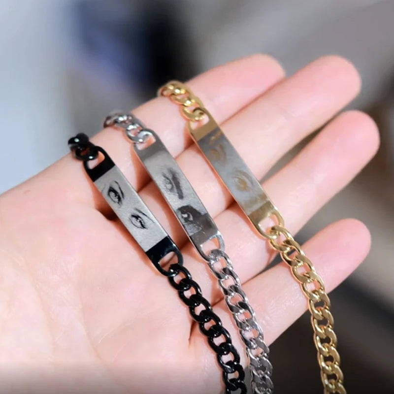 Letdiffery Personalized Eyes Photo Bracelets Stainless Steel Custom Laser Engrave Picture Name Date Men Women Kids Bracelet Gift