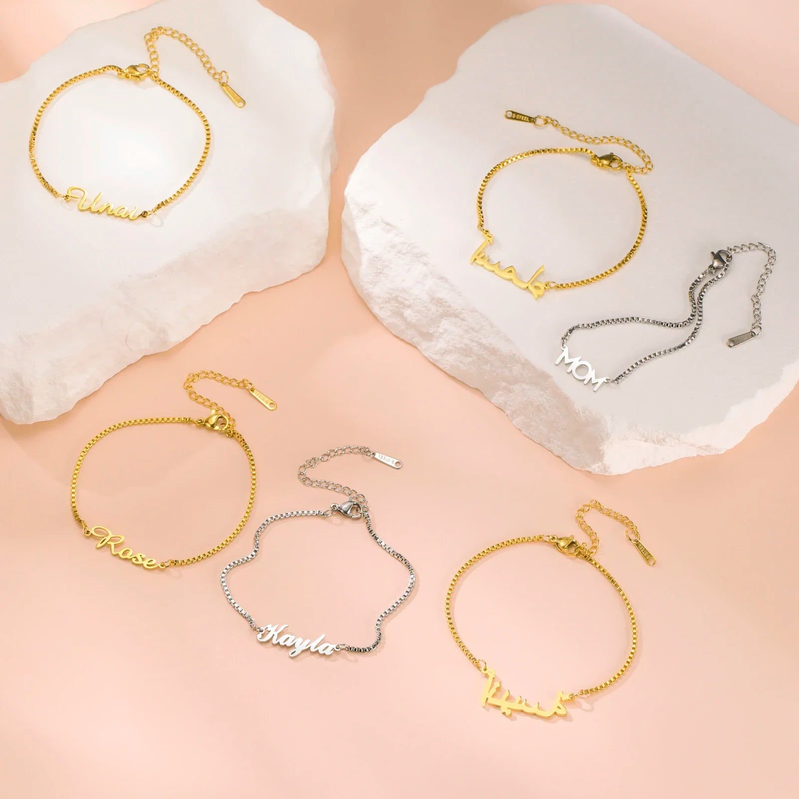 Women Girls Personalized Name Bracelet Stainless Steel Box Chain Letter Customized Charm Bracelets Unique Custom Jewelry Gift